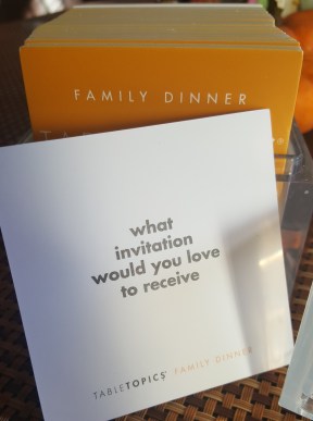 Last year around Christmastime, I came across these dinner table cards called “Table Topics.” Their purpose is to get families who sit down together at mealtime to talk about different things. Some of the cards will ask questions like, “Who was the worst teacher you ever had?” Or, “What are the next three countries you’d like to visit?” In our home, each family member takes turns as to who gets to pick a card and ask the question each night, and about three months ago, my son chose a card asking each of us the following question: